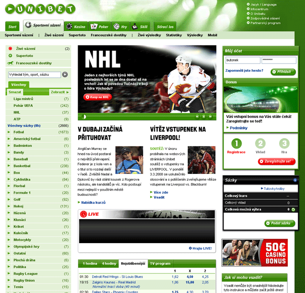 · Live sázky |