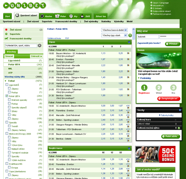 Otevře se Vám nabídka s možnými způsoby vkladu na Unibet účet, kde si zvolíte, co Vám nejvíce vyhovuje. Tímto je Vaše registrace a založení účtu u Unibet hotova. Gratulujeme Vám. Teď se stačí jen přihlásit se svým uživatelským jménem a heslem, které jste si zvolili při registraci. Unibet Vám pošle potrvrzení o registraci na Váši e-mailovou adresu. Teď už můžete začít si užívat online sázky a sázení s Unibet. Přejeme Vám hodně štěstí.