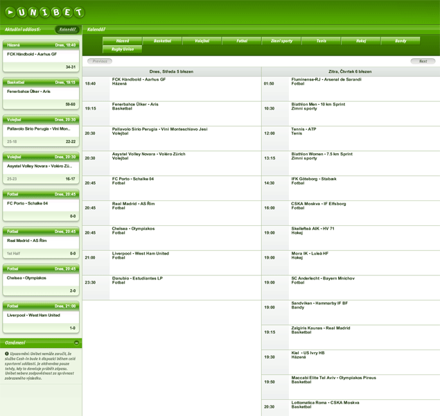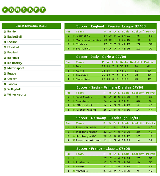 Unibet.com byla založena v roce 1997 a má více než 2.1 milionů zákazníků ve více než 150 zemí. O sázkovou kancelář Unibet se stará více než 300 zaměstnanců, takže se jedná o velikou a dobře řízenou sázkovou kancelář nabízející kvalitní služby. Unibet nabízí živé sázení tzv. Live sázky co jsou nejrychlejší a nejvíce vzrušující forma sázení při které můžete podávat sázky vcelém průběhu zápasu. Unibet svým novým hráčům připravila pěkné vstupní bonusy, které všichni určitě rádi využijí. Unibetu nechybí ani podrobná nápověda a instrukce „krok po kroku“ pro začínající hráče. Unibet jako podporu poskytuje průběžné výsledky, LIVE výsledky a statistiky. Vklady i výběry lze uskutečnit pomocí bankovních převodů, kreditních karet VISA a Mastercard nebo internetové peněženky Moneybookers. Unibet také nabízí mobilní sázení, kde pomocí mobilu můžete sázet kdykoliv a kdekoliv. Unibet poskytuje jednoduché a složené sázky (až trojité) na Ligu mistrů, Premier League, Primera División nebo zápasy hokejové ligy. Oddělení zákaznické podpory Unibetu je v provozu 24 hodin denně buď telefonem, nebo e-mailem a to kompletně v češtině. To vše dělá z Unibet příjemnou sázkovou kancelář, která může směle konkurovat ostatním sázkovým kancelářím.