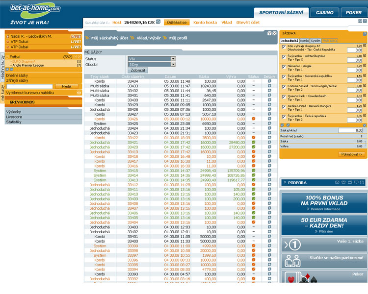 Způsob, kterým si na Bet-at-home vložíte vklad, záleží pouze na Vás. Doporučujeme používat Moneybookers - je to rychlé a bez poplatků.